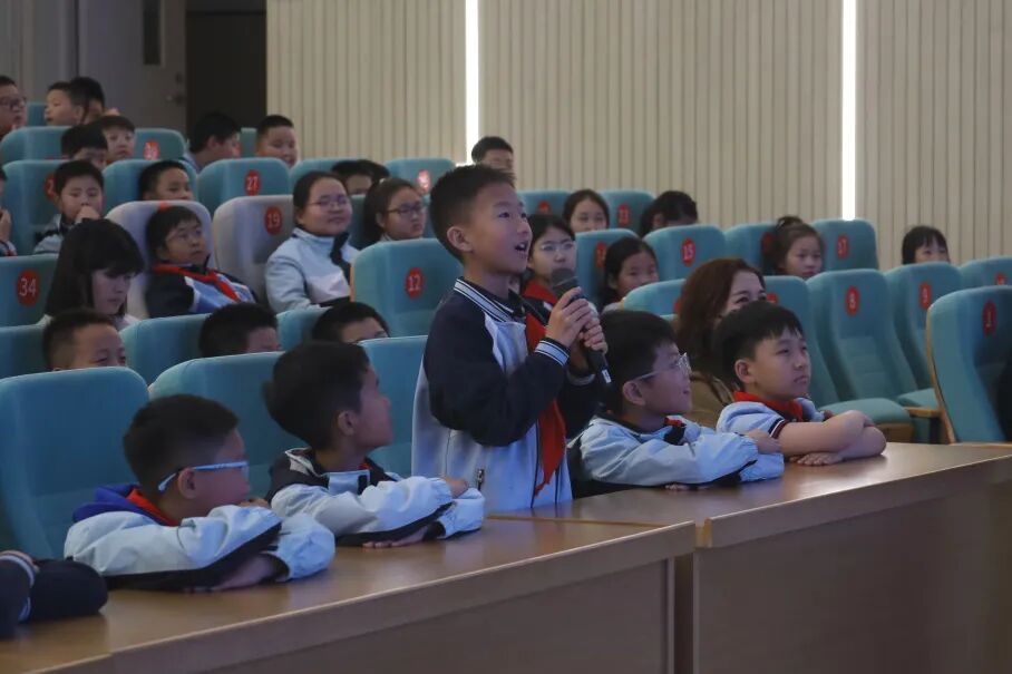 在互动问答环节,同学们积极踊跃举手,抛出一个个奇思妙想,在交流中播撒科学的种子。