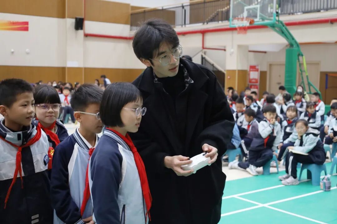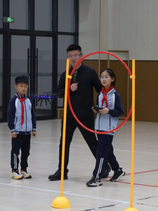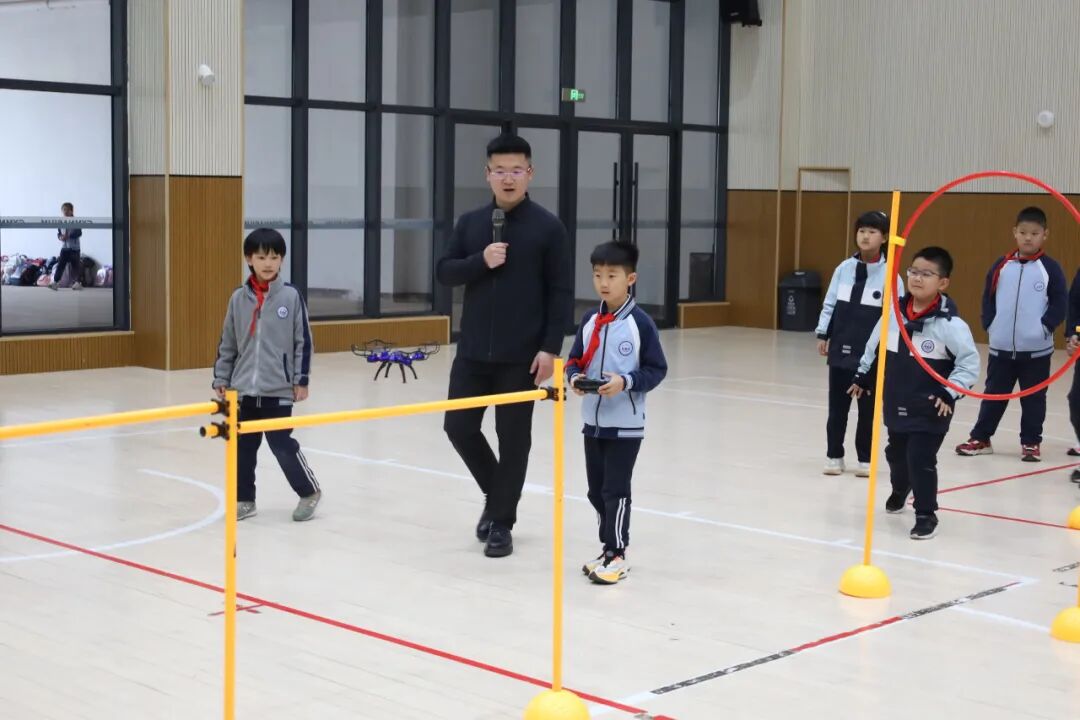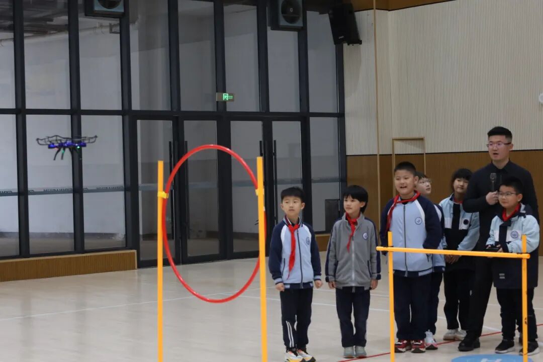 无人机实操体验环节将气氛推向高潮。在指导教师的指导下,孩子们手握遥控器,小心翼翼地操控无人机穿越重重障碍。每一次成功过障,都引来阵阵欢呼。
