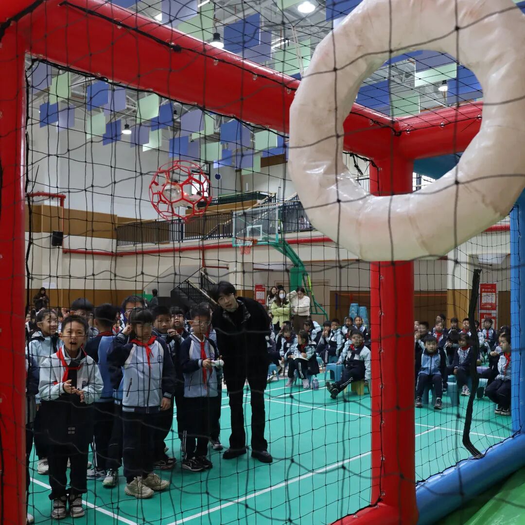 与此同时,学校西篮球馆化身为一片科技海洋,三年级的同学们在这里进行了一场沉浸式科技体验。