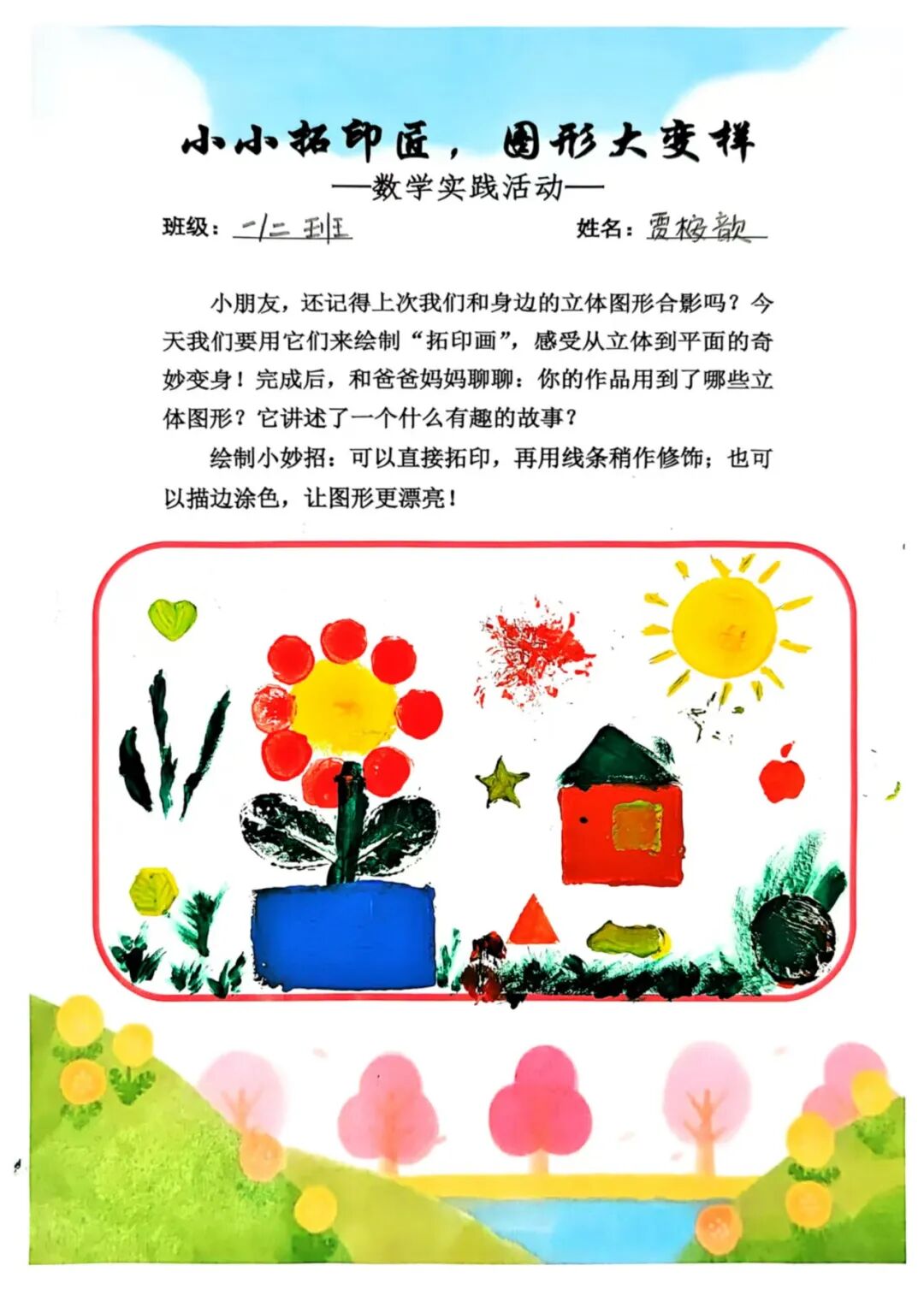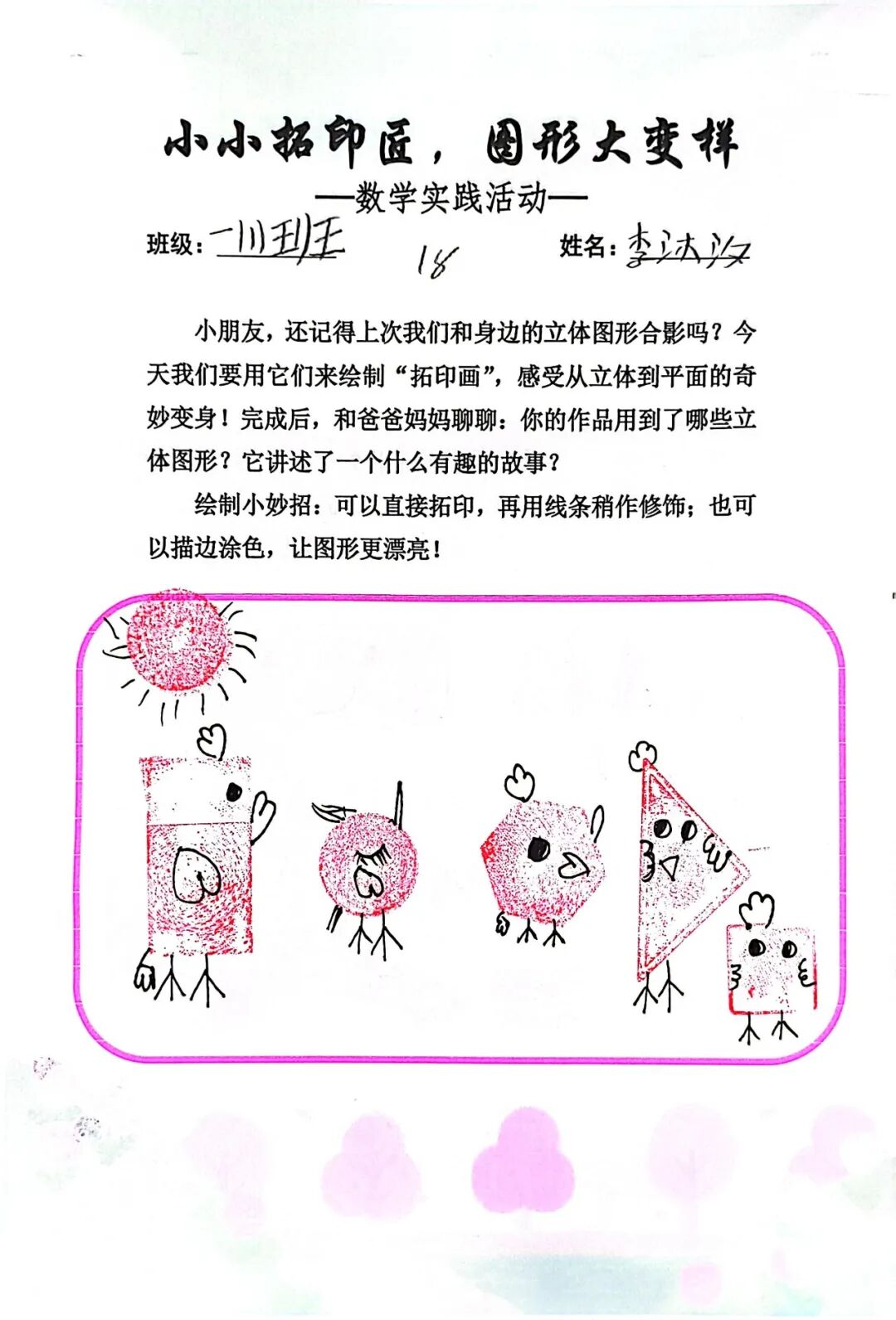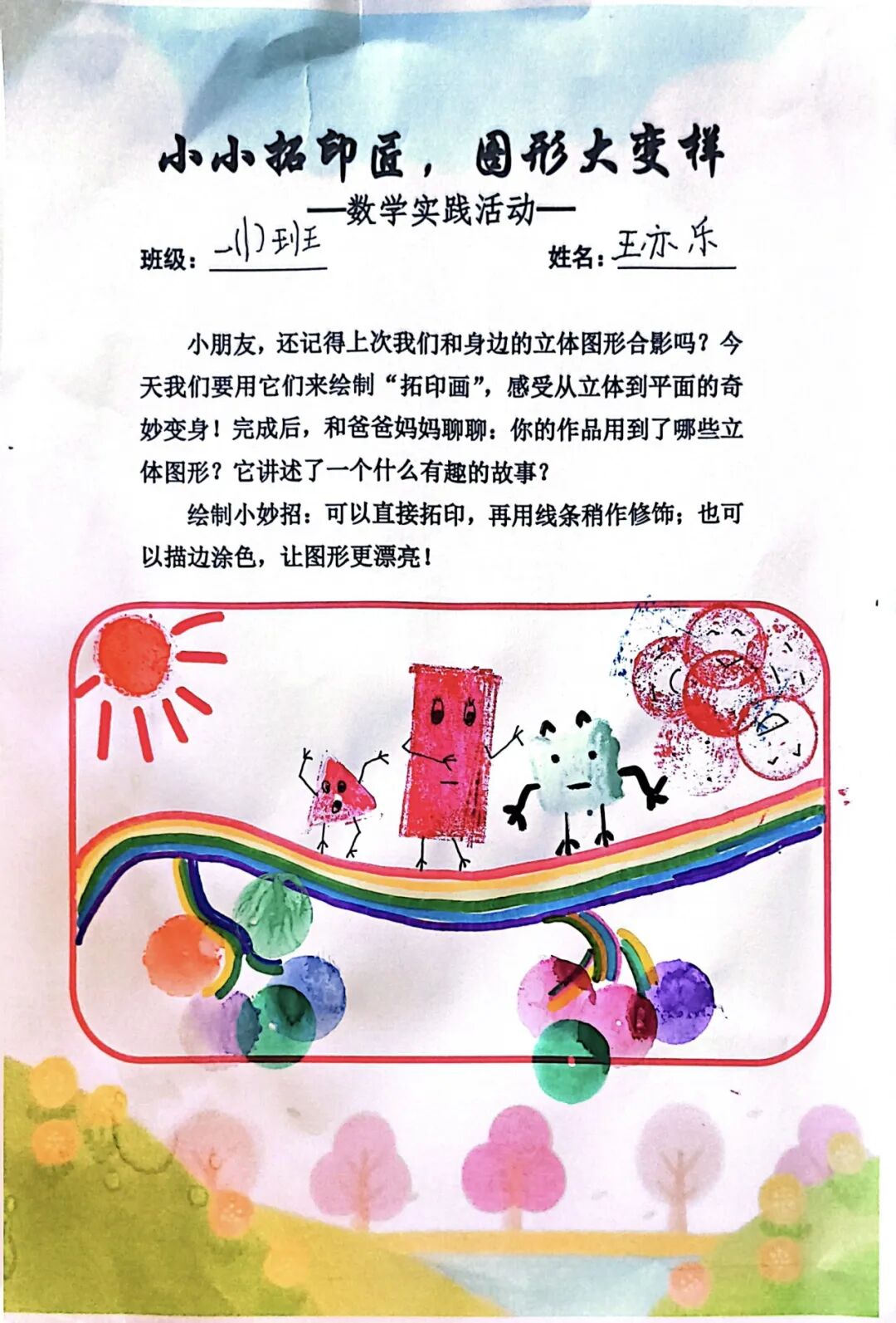 一年级学生以“数字拓印·图形百变”为主题,开展了趣味数字展、小小拓印匠、图形大变样系列活动。孩子们化身小小拓印师,将抽象的数字与多样的图形通过拓印的形式具象呈现,在动手操作中认识数字、感知图形的百变形态,初步建立数感与图形认知,让数学学习从趣味开始。