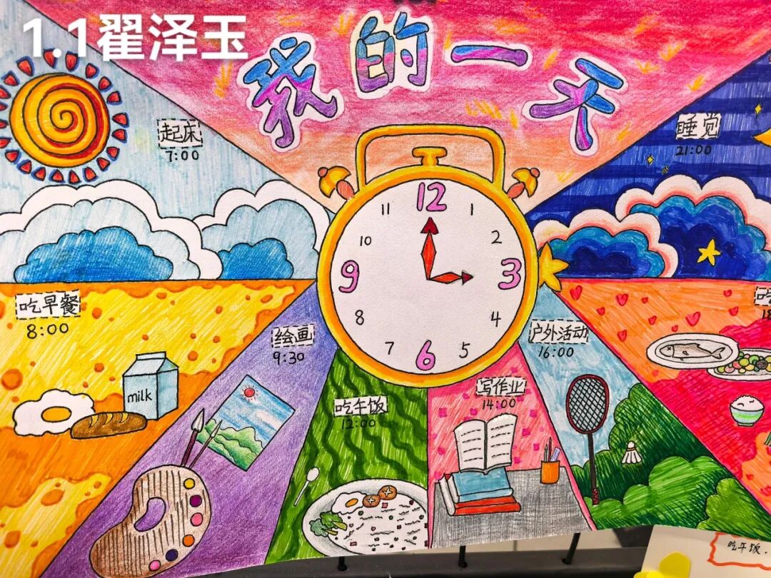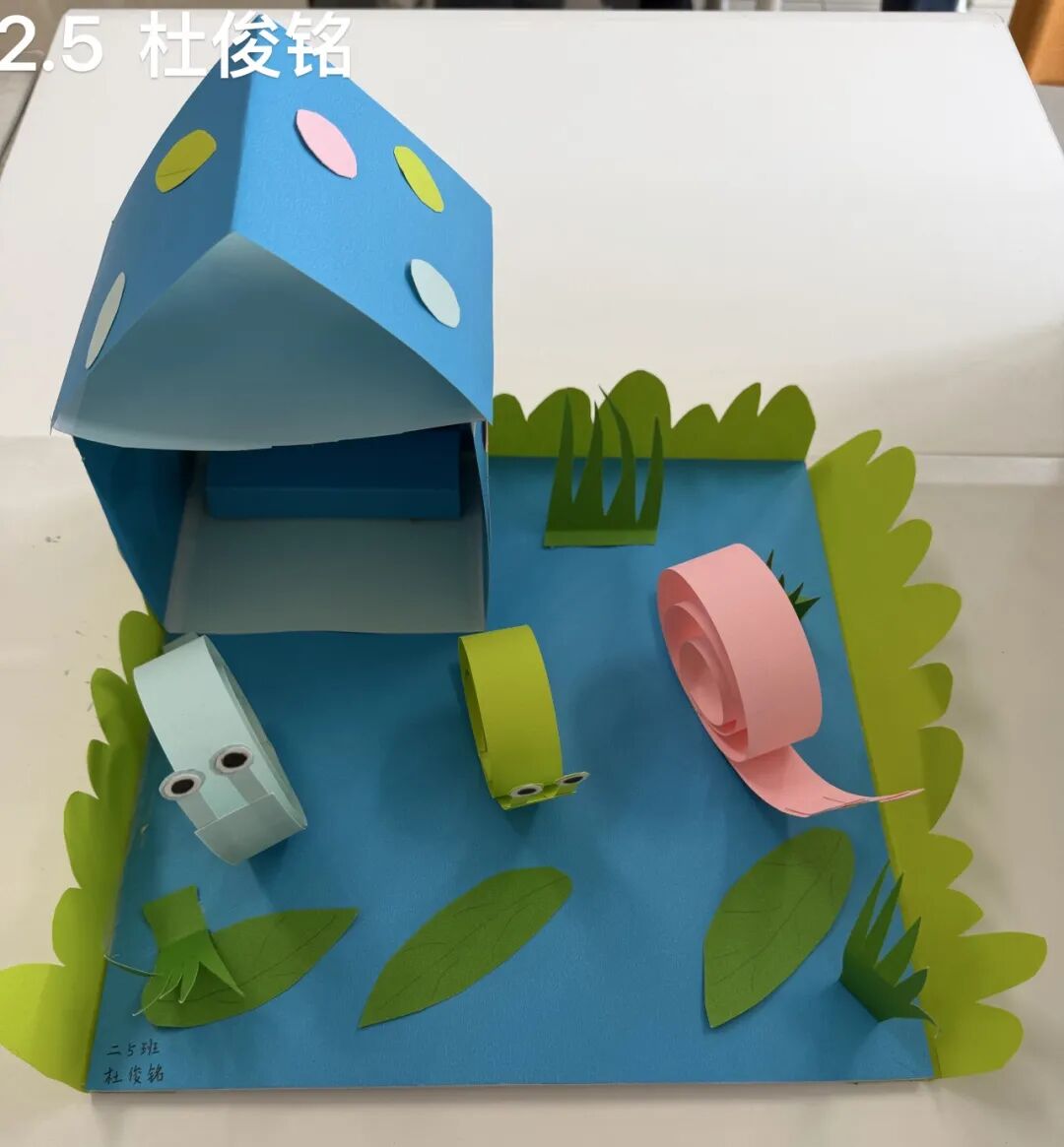 二年级同学们围绕“蜗牛时钟·生活数学”展开创作,打造小蜗牛的家、制作手工时钟,将时间概念与手工创作结合。孩子们在裁剪、拼接、装饰的过程中,熟悉时钟的结构与时间认读方法,体会数学在生活中的实用价值,让生活成为数学学习的鲜活课堂。