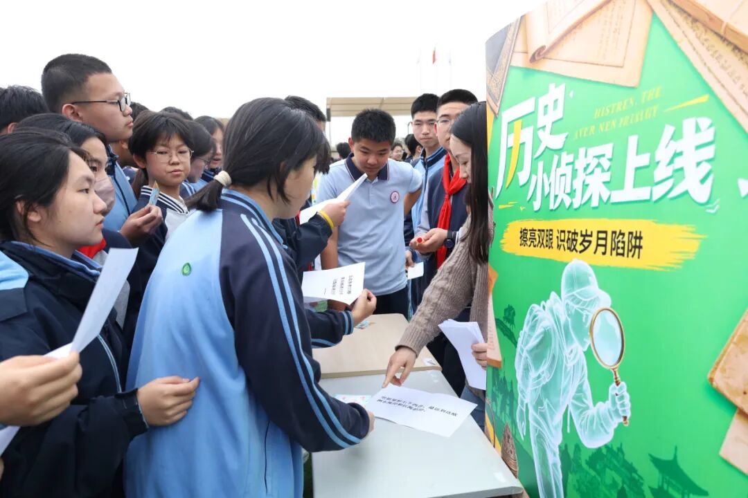“我给历史纠个错”鉴定区,同学们化身“历史小侦探”,在细节中辨析史实,锤炼历史思辨能力。