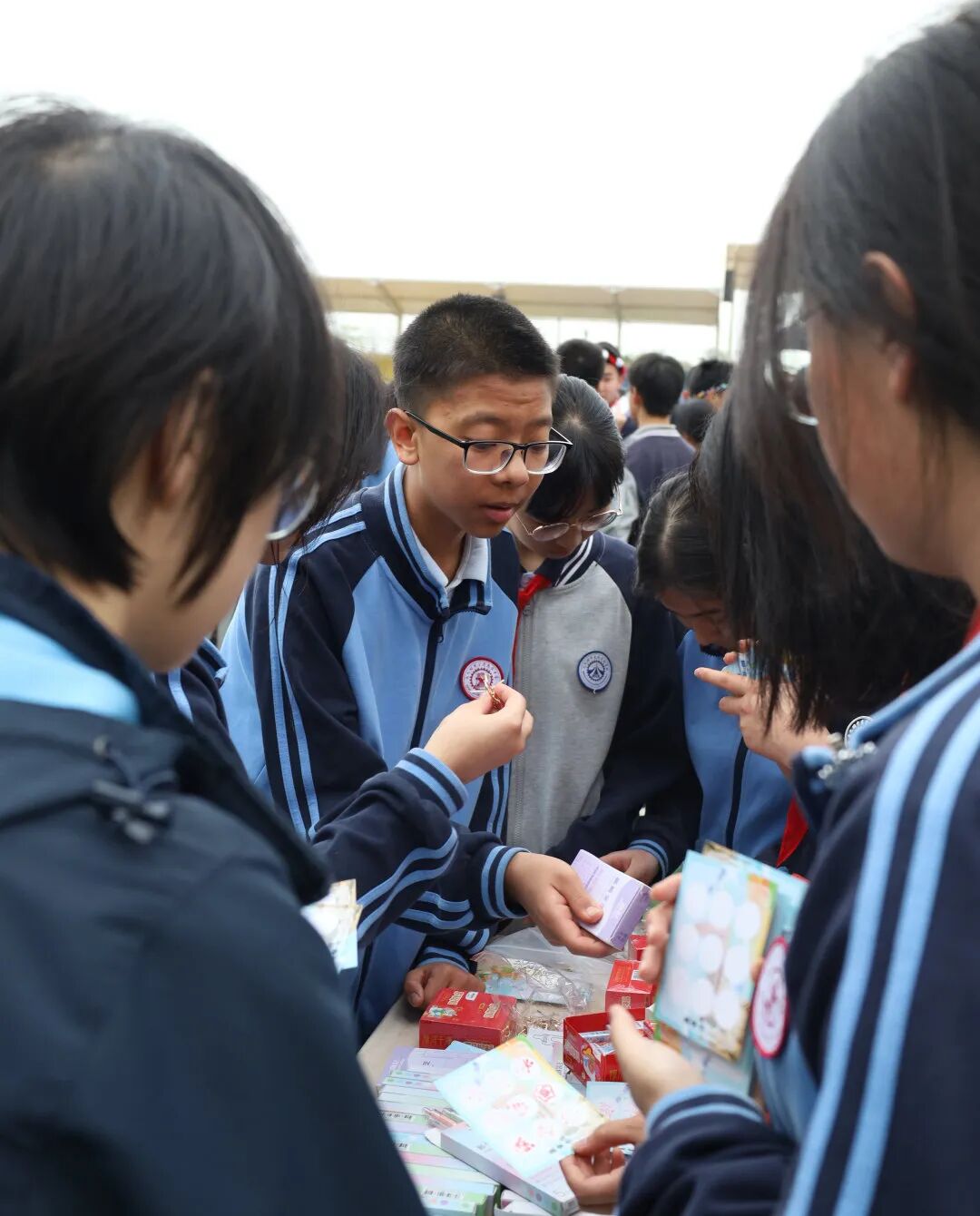 同学们穿梭于各展位之间,凭借精彩作答与积极互动,赢得一枚枚印章。集齐9枚后,大家迫不及待涌向兑换区,用闯关赢来的"勋章"换取惊喜——一本史地读物,或一枚学科节限定徽章。每一份奖品,都是思维跃动的见证。