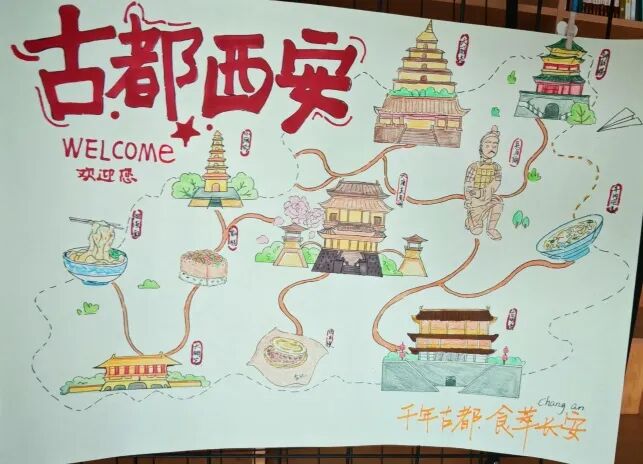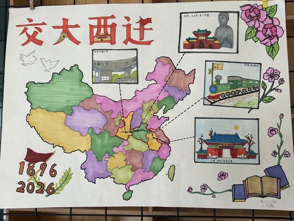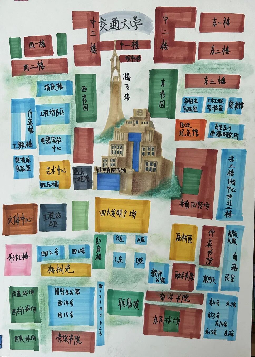 同学们融合校史与地理,用线条与色彩勾勒校园、标注标志性建筑,饱含对交大及交附空港的热爱。