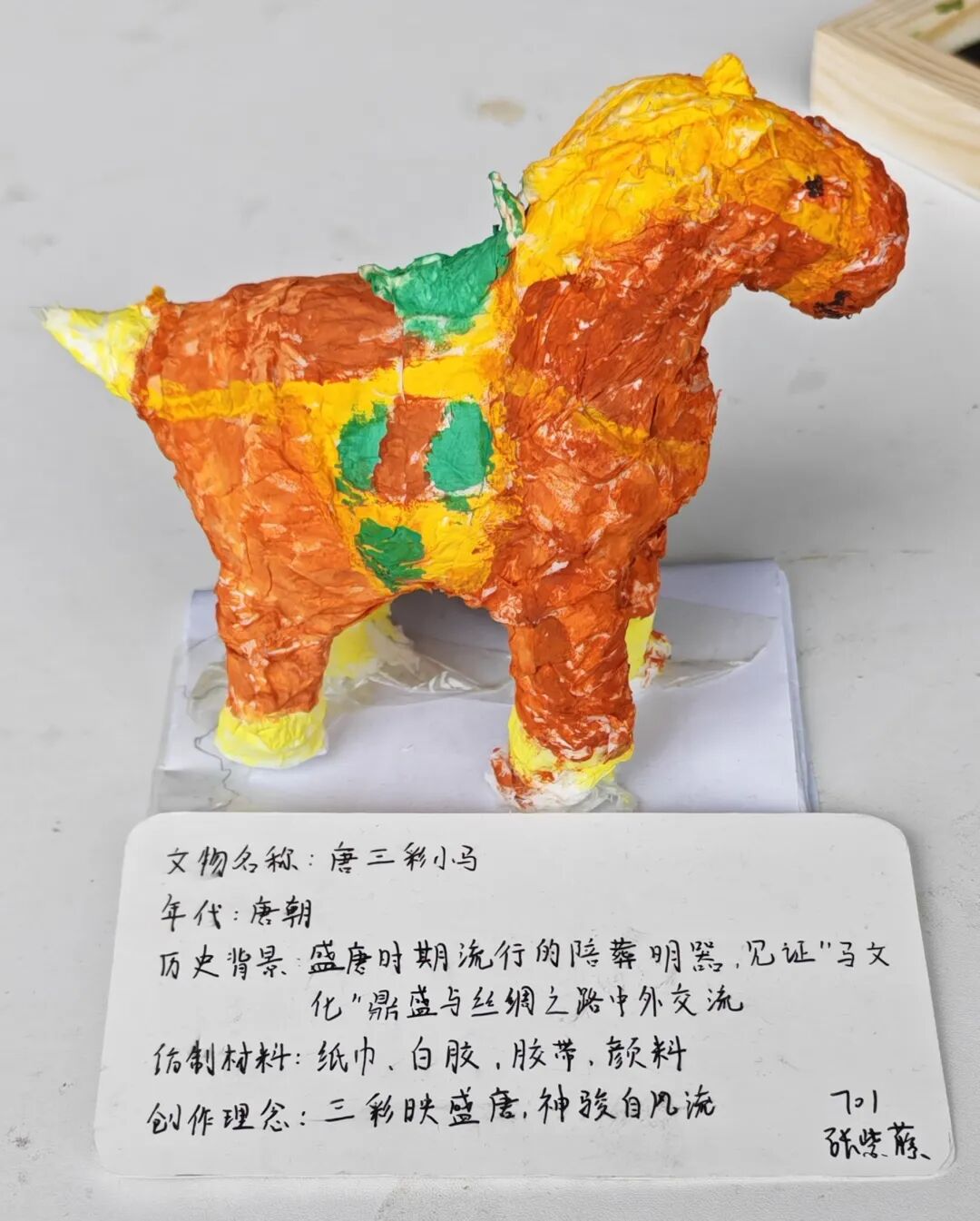 同学们用环保材料复刻演绎文物,让历史鲜活可感。每一件作品都承载着同学们对历史的思考与敬畏。