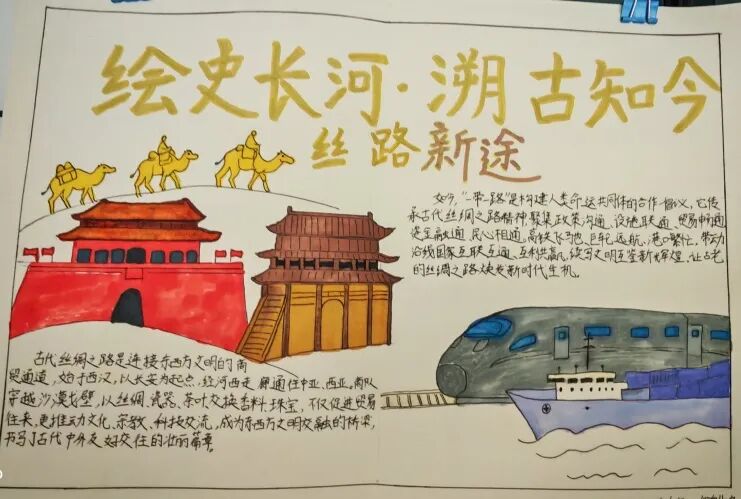 上下千年历史浓缩于画卷,线条流畅、色彩雅致,展现了同学们的绘画功底与历史认知。