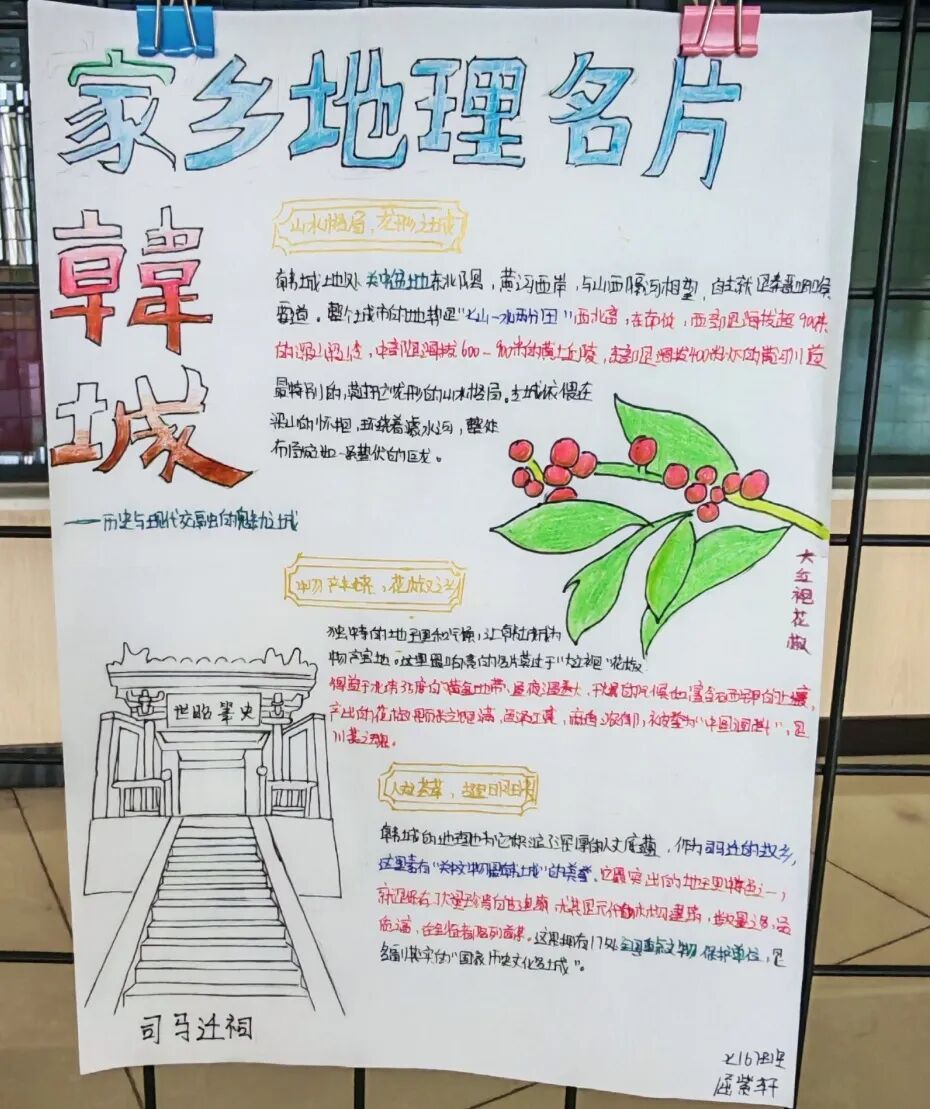 同学们用镜头捕捉祖国山河之美,配文介绍地理特征,让观者一边赏景一边学知识。