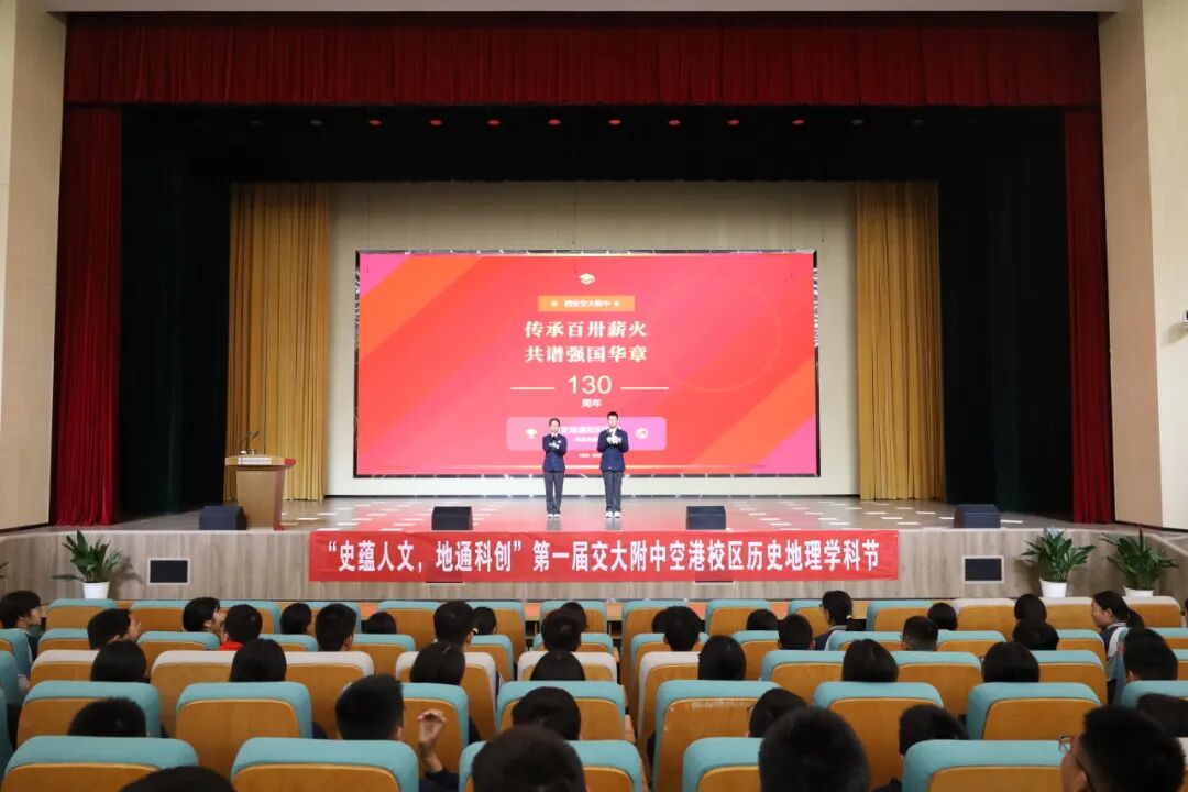 文脉飘香满校园,博学竞逐展风采。4月8日下午,西安交大附中空港校区第一届历史地理学科节“一战到底”知识竞赛在学校报告厅火热开赛。史地学科教师与全体初二年级师生齐聚一堂,共同见证了这场智慧与素养的精彩较量。