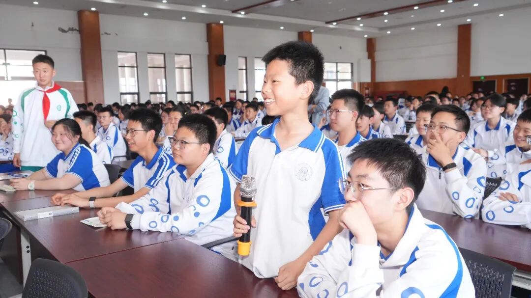 互动答题环节,同学们踊跃举手、积极抢答,现场气氛热烈高涨,答对的同学收获精美纪念品,喜悦之情溢于言表。