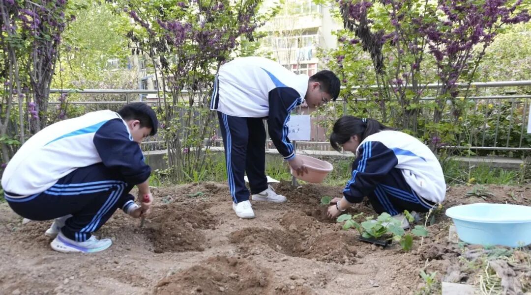 翻土、挖坑、放苗、培土、浇水……同学们分工合作,配合默契。平日里握惯了笔杆的手,此时拿起了小铲子、水桶,虽然动作略显生疏,但每个人都格外认真投入。