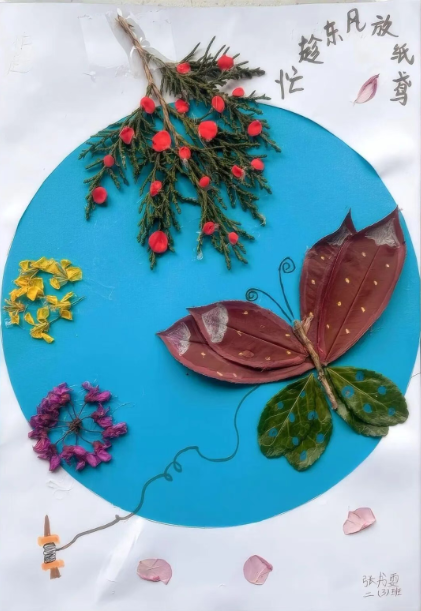 孩子们运用科学课上学到的观察方法,收集校园里的花瓣、叶片,在美术课上进行色彩拼贴与绘画;结合语文课积累的春日诗词,为自己的剪贴画配上短诗;同时融入数学课认识的图形元素。一幅幅作品色彩明快,充满童真的观察与想象。