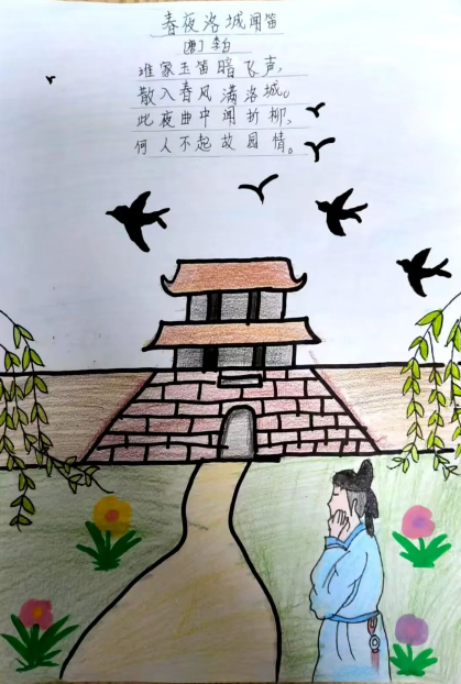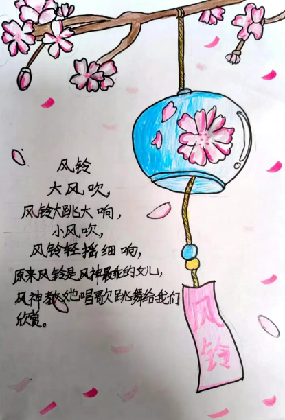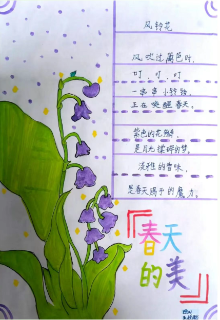 学生先完成春日诗歌的独立创作,再为诗作绘制配画;音乐课上,他们挑选舒缓的背景音乐,为每一首诗录制配乐朗诵音频。学生的创作图文并茂,诗、画、乐相融,成为一份可听可看的春日礼物。