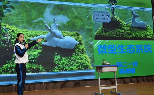 初二(1)班喻美晴同学带领大家走进奇妙的生物世界,通过微观视角呈现生态系统的平衡及其原理。