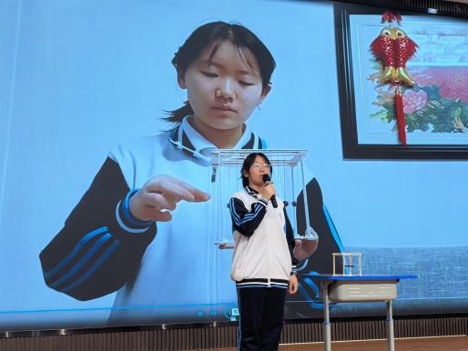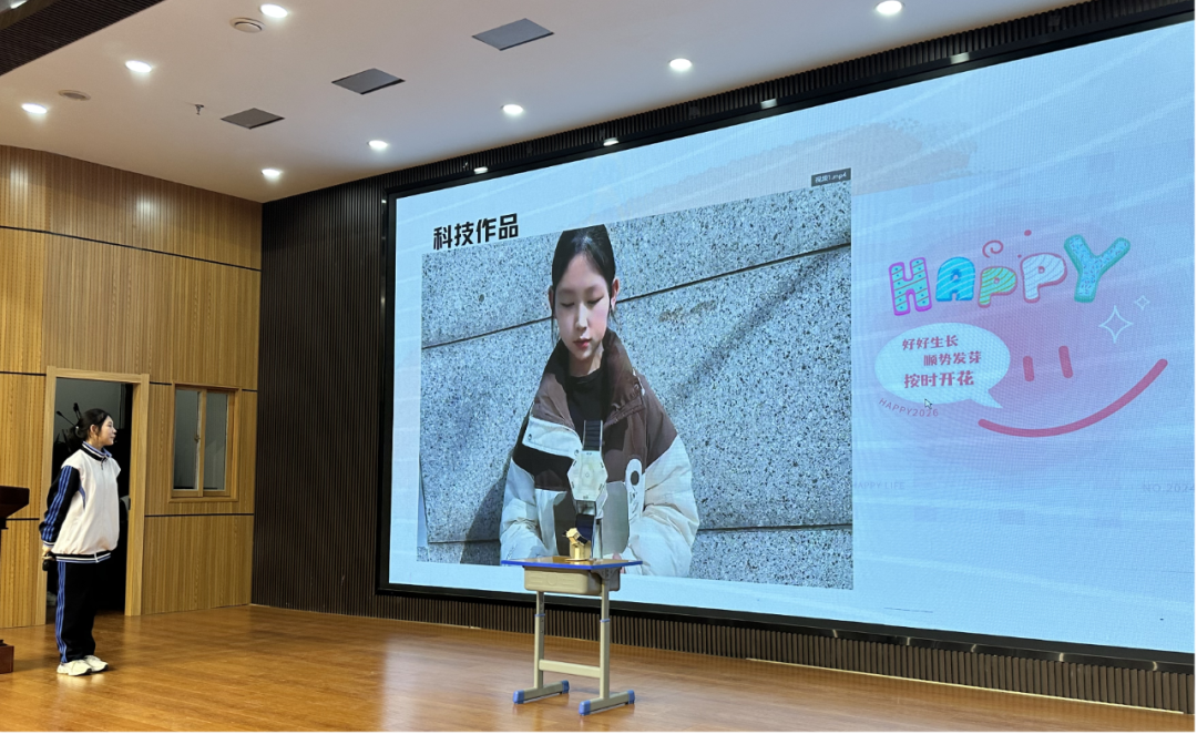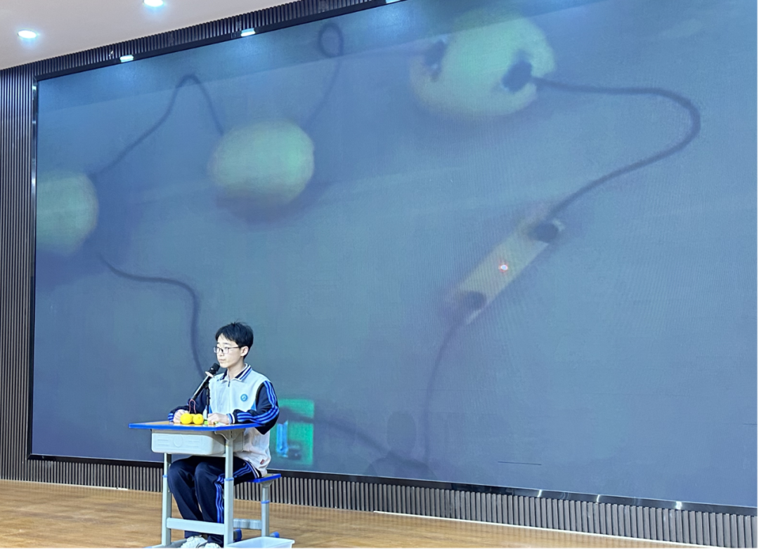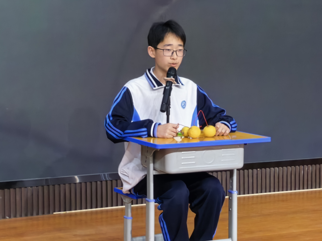 随后,15位(组)同学依次登台,通过生动的讲解、直观的展示介绍他们的科学实践或研究成果,绘就了一场跨生物、地理、物理、化学等多学科的画卷,让抽象的科学知识变得鲜活可感,让现场师生沉浸式感受科学的奇妙魅力。
