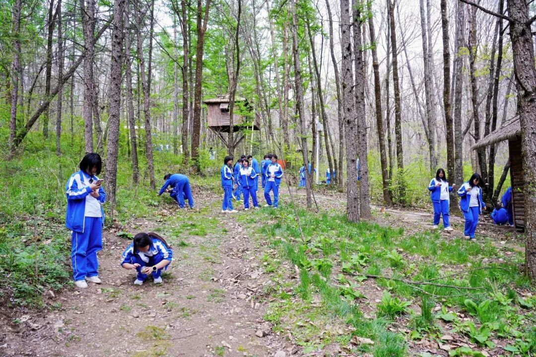 在专业向导的带领下,大家沿着步道深入山林。从松桦的挺拔到高山杜鹃的娇艳,同学们近距离观察植物的肌理,了解它们在复杂生态链中的生存智慧。