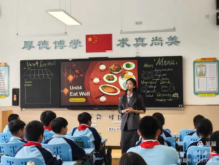 董芮含老师本次执教七年级英语 Unit 4 Eat well,整堂课教学思路清晰、环节紧凑,从贴近学生生活的饮食话题导入,到重点词汇、句型的细致讲解,再到情景运用与巩固拓展,层层递进、环环相扣。