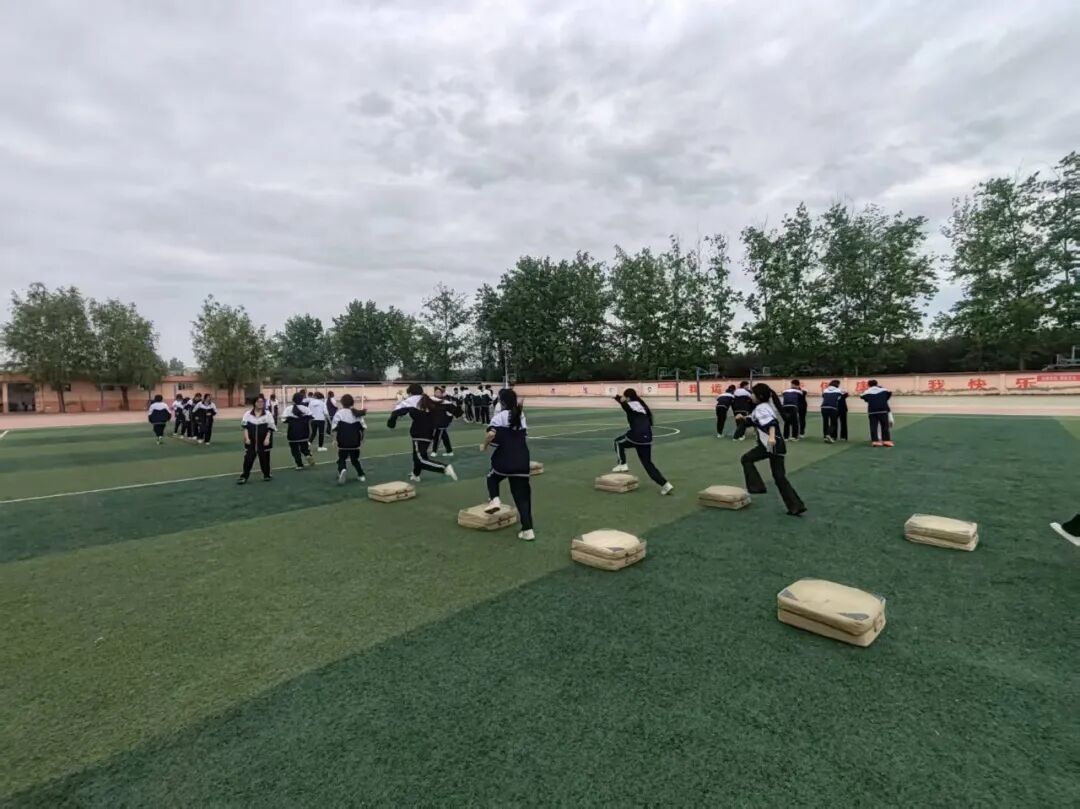 舒小瑾老师以短跑名将苏炳添为导入,激发学生学习兴趣,围绕“重心平稳、后蹬有力、前摆积极、摆臂协调”的技术核心,通过蛇形跑热身、弹力皮筋摆臂、绳梯步频练习、垫子步幅训练等多样化手段,层层递进突破教学重难点。课堂上学生身姿矫健、步伐轻快,在练习中掌握技术要领,感受奔跑的快乐,充分展现了高中体育课堂的活力与实效。
