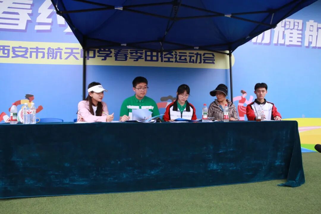 西安市航天中学党总支书记侯建峰、西安市航天中学校长丁宝林、西安市航天中学副校长张引杰、西安市航天中学副校长付小静、西安市航天中学副校长张茜共同参加了运动会开幕式。