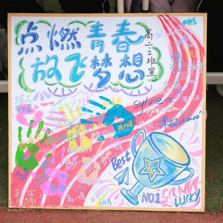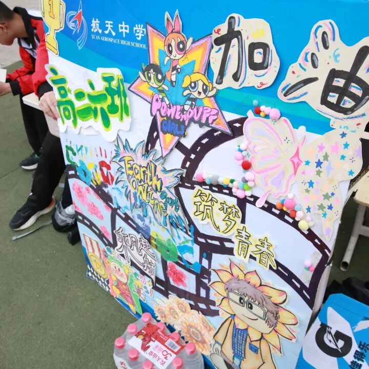 各班制作的加油牌色彩斑斓、字字有力,每一块牌子都是一句无声的祝福,在运动员奋力冲刺时默默传递着力量。