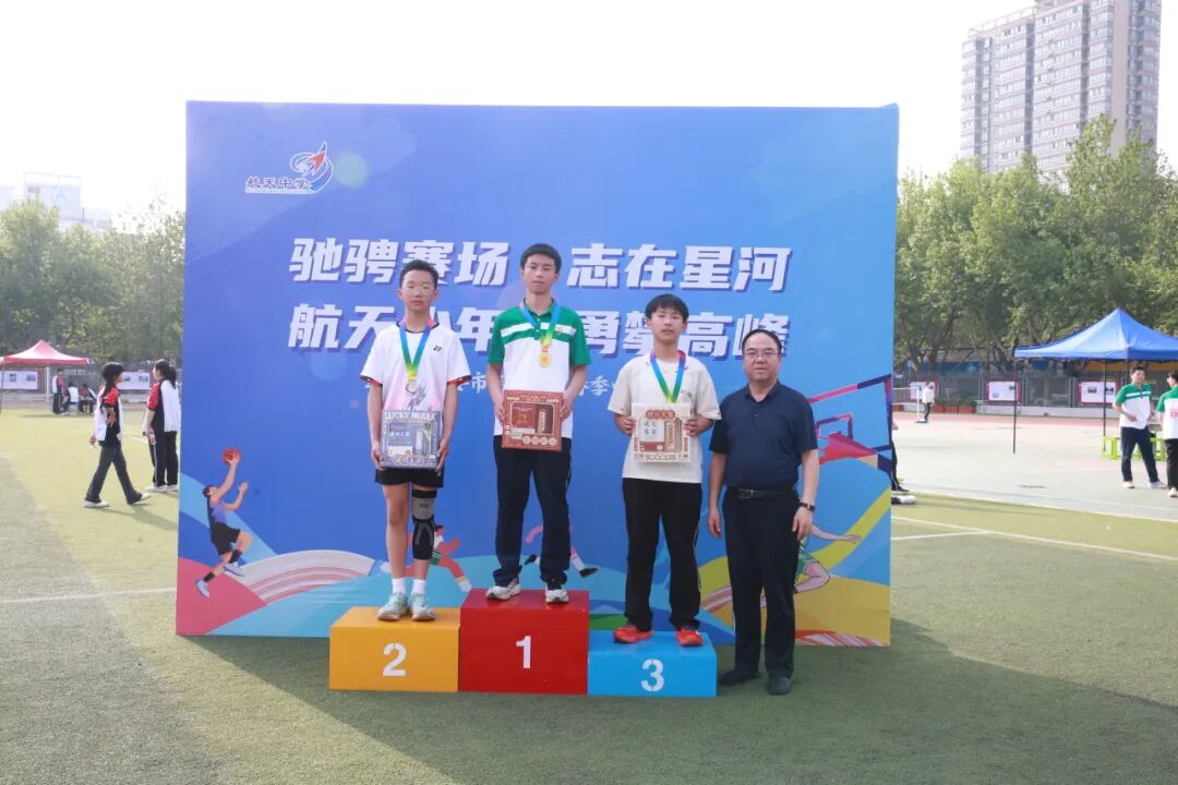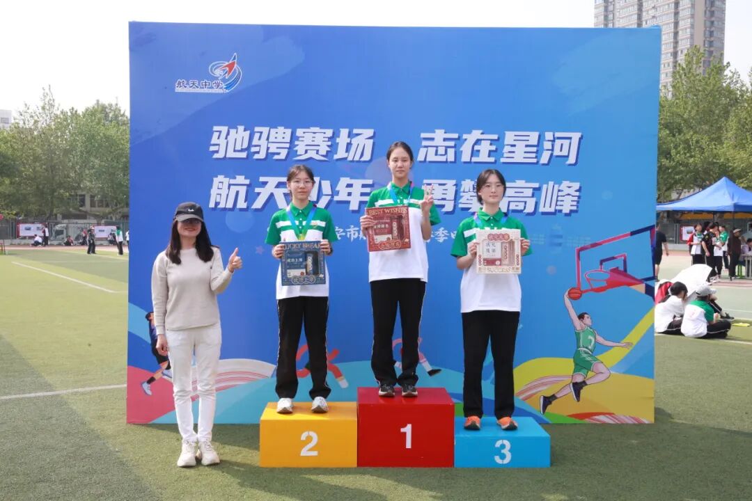 经过两天紧张而激烈的角逐,西安市航天中学2026年春季田径运动会于4月15日下午圆满落下帷幕。本届运动会不仅展现了同学们顽强拼搏的精神,更彰显了团结友爱的校园文化。裁判长王文喜老师宣读比赛结果。特别值得庆贺的是,本届运动会共打破3项校纪录:八年级3班的杜思颖、李宋溪淼同学分别以9米85和10米53的优异成绩,刷新了西安市航天中学初中女子实心球项目的最高纪录;高二3班马雅楠同学以10米的成绩,打破了高中女子铅球项目最高纪录。