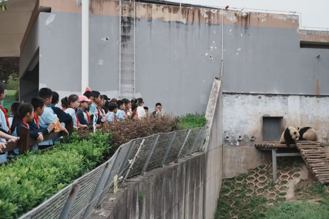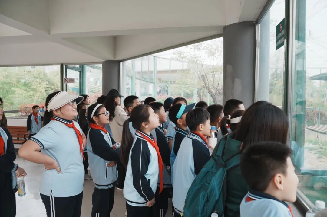 第一站,同学们走进秦岭四宝科学公园。在讲解员的带领下,同学们先后探访了大熊猫、朱鹮、金丝猴、羚牛的栖息地,近距离观察它们的外形特征与生活习性。同学们沉浸式聆听讲解员讲述秦岭四宝的保护故事,真切感受着生态之美与生命的力量。