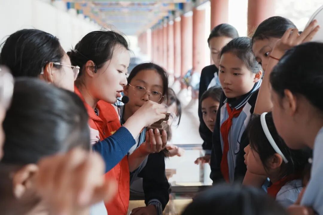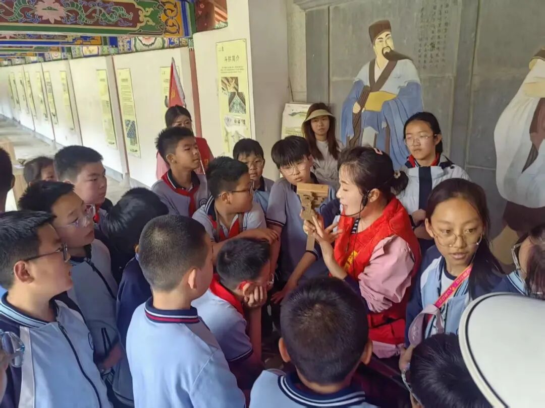 结束秦岭四宝科学公园的参观研学后,师生们来到了道教文化发源地之一——楼观台,循着千年文脉,探访宗圣宫遗址。讲解员缓缓讲述着楼观台的历史渊源、道家文化的核心内涵,从老子著《道德经》的传说,到古建的建筑工艺,每一段故事、每一处细节,都让同学们深深着迷。