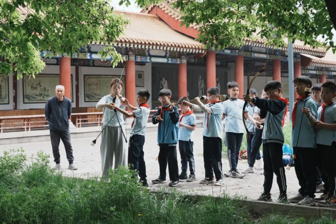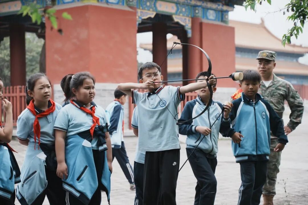 研学的乐趣,在于动手实践,在于亲身体悟。在非遗实践环节,斗拱搭建与射箭体验让同学们沉浸式感受传统技艺的魅力。