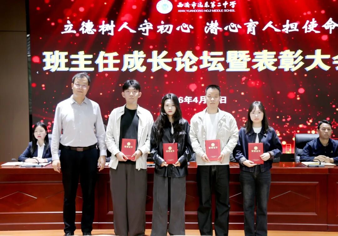 为进一步加强班主任队伍建设,夯实班级管理根基,提升德育工作实效,4月16日下午,西安远东二中隆重举行班主任成长论坛暨表彰大会。校领导、各部室主任及全体班主任齐聚一堂,共话育人初心,共展教育担当。