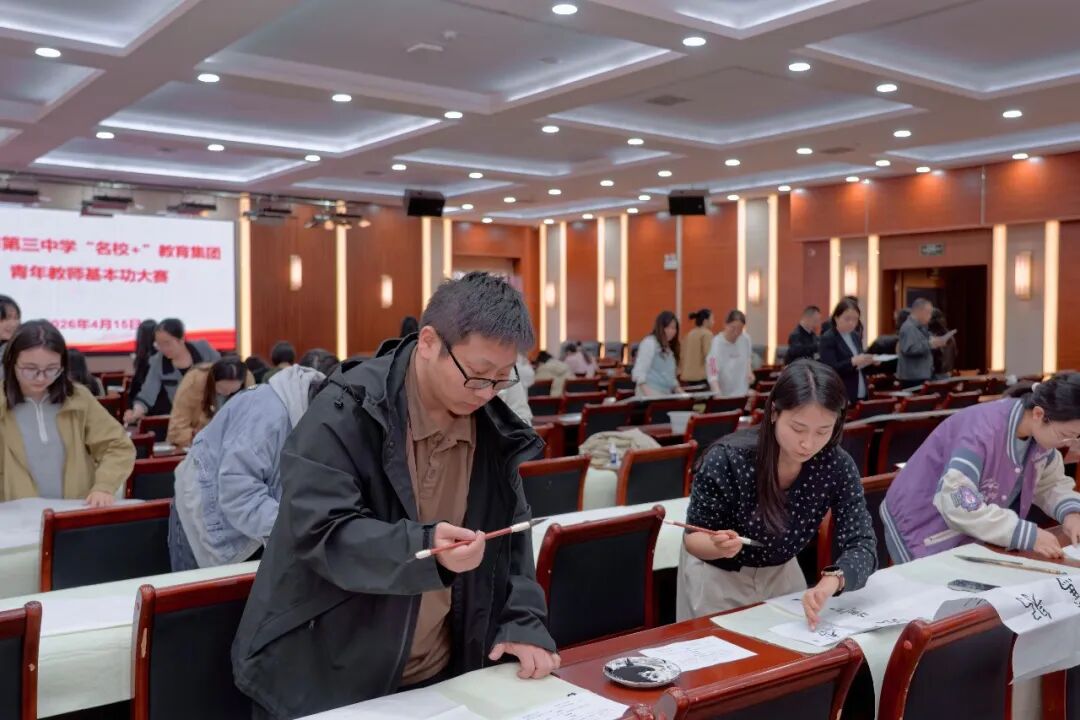 为进一步提升青年教师专业素养,锤炼教学基本功,三中教育集团举行青年教师基本功三笔字(钢笔字、粉笔字、毛笔字)大赛。来自集团成员校的青年教师们齐聚赛场,以墨为媒、以笔竞技,尽显扎实功底与昂扬风貌。