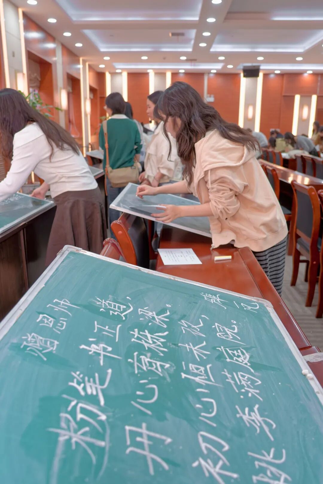 比赛现场,老师们凝神静气、认真书写,一笔一画精心打磨,一字一句力求规范。钢笔字遒劲流畅、工整清秀,粉笔字端庄大方、清晰美观,毛笔字气韵生动、章法自然,在笔墨书香中展现出良好的书写素养与积极向上的精神面貌。