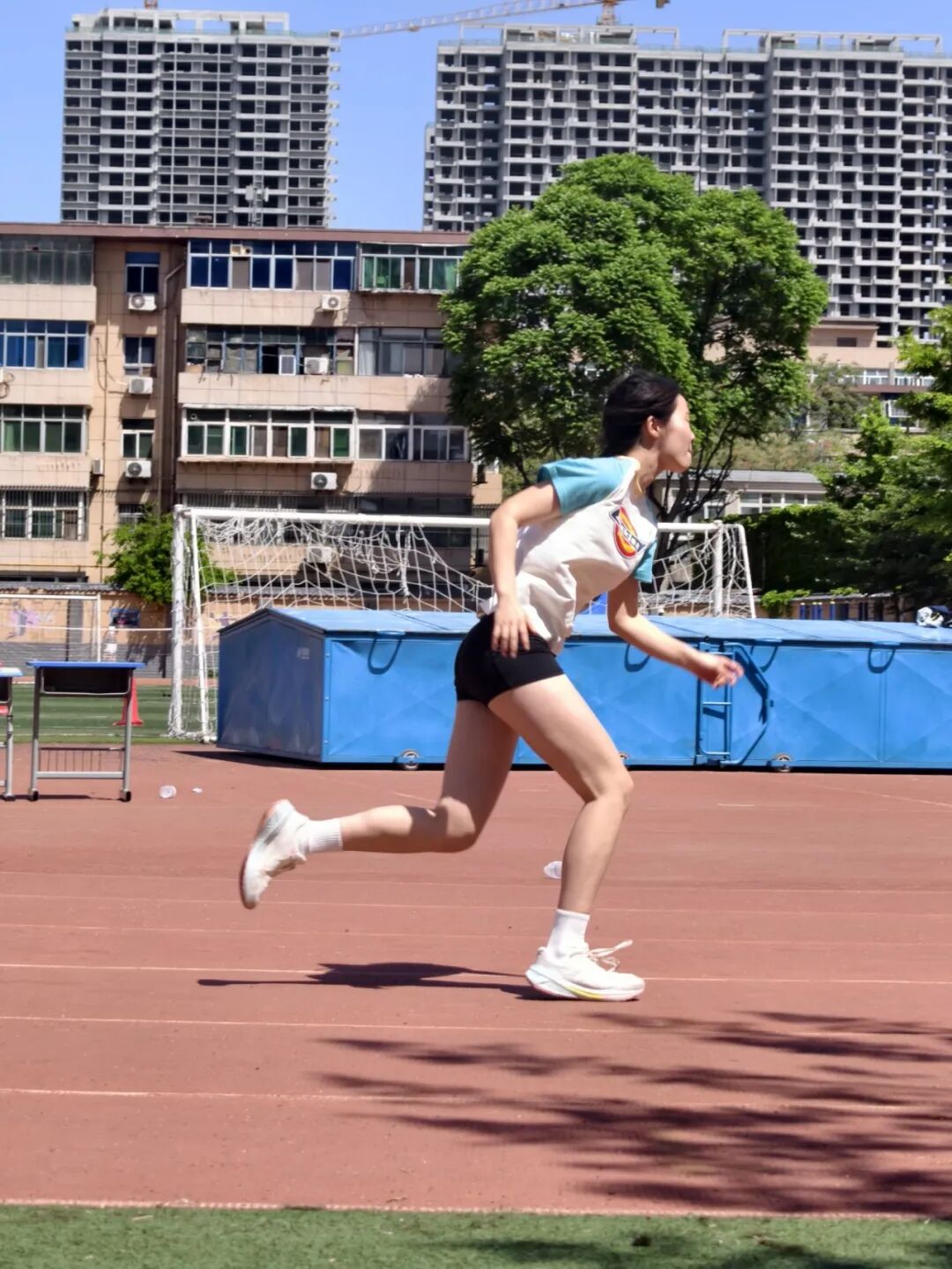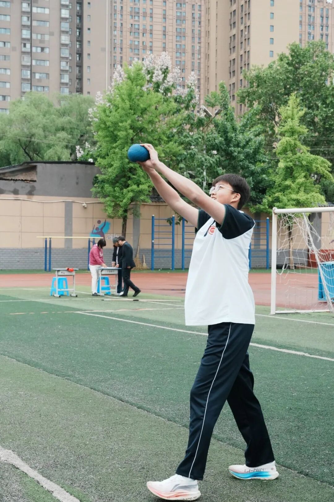 除田赛区域同样亮点十足:跳远沙坑旁,助跑、起跳、腾空、落地,动作行云流水,每一次沙坑上留下的脚印,都伴随着周围一阵惊叹;跳高垫前,选手们一次次向更高的横杆发起挑战,即使不慎碰掉杆子,也只是拍了拍身上的灰,转身就投入下一次助跑;投掷区域里,实心球在空中划出漂亮的抛物线,标枪带着风声扎向远处的草坪,候场的选手互相交流着发力技巧,刚结束比赛的同学顾不上擦汗,先给自己的同班伙伴呐喊助威。