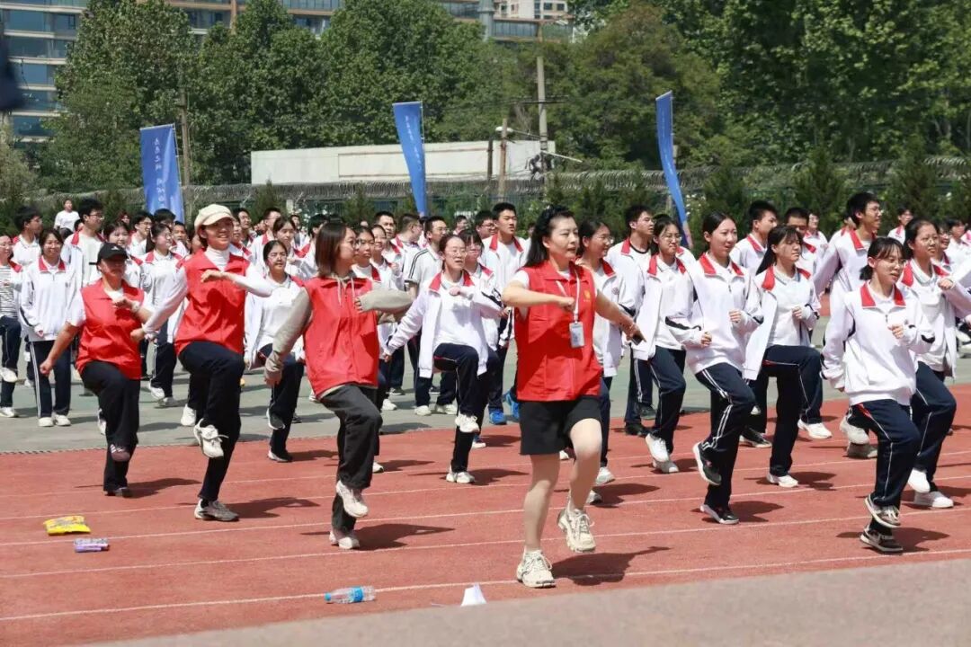 动感音乐一响,活力啦啦操瞬间点燃全场!同学们从教室里的“埋头苦读模式”一键切换,舒展身体、放下拘谨,跟着节奏摇摆。平日里严肃的班主任也忍不住跟着拍手,原来,高三的操场也可以这么“嗨”!