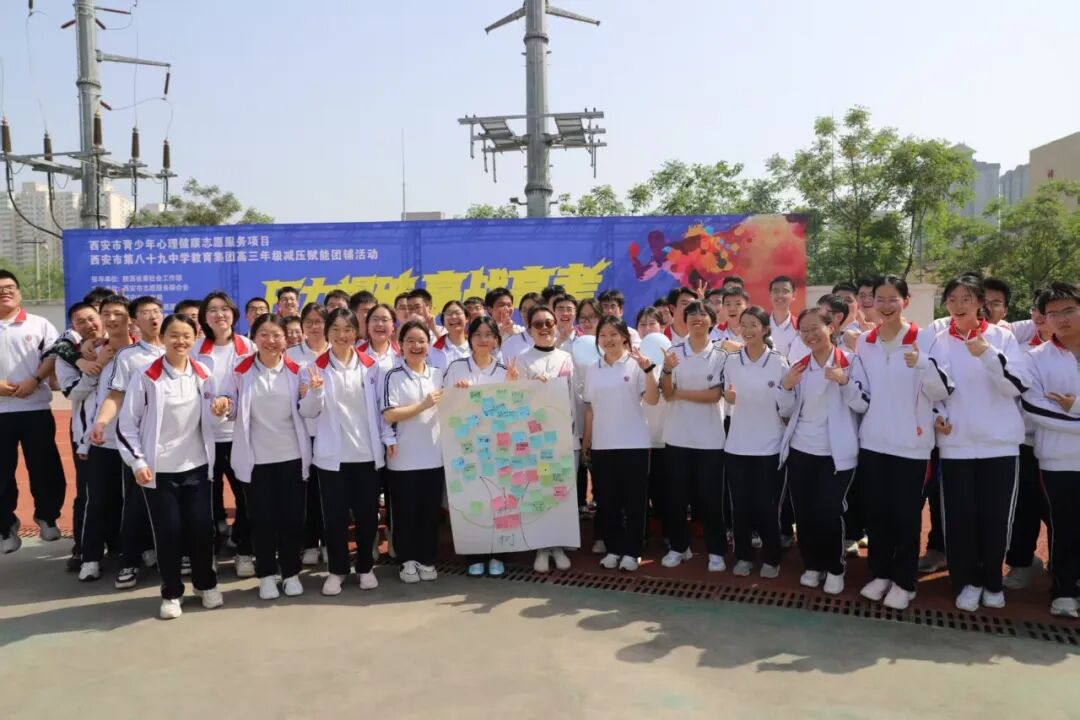 本次活动由陕西省委社会工作部指导,西安市志愿服务联合会主办,西安市体育局协办,西安市心羽志愿服务中心承办。教育集团900余名高三学生分两批次参与,用一场酣畅淋漓的团体辅导,把压力“踩爆”,为高考“充电”!
