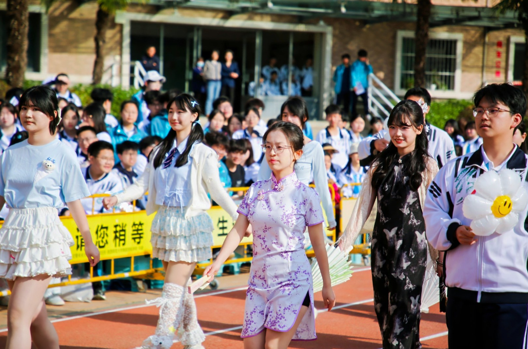 紧随其后的是各班级代表队,每一支队伍都独具匠心、各具风采,成为赛场上最耀眼的风景线。有的身着统一校服,精神抖擞、身姿昂扬,嘹亮的口号响彻云霄,尽显班级的凝聚力与向心力;有的搭配特色服饰,融入创意造型与班级标识,生动展现出独特的班级文化底蕴;还有的精心编排了舞蹈、歌唱等特色节目,灵动的舞姿、清脆的歌声、活力满满的表演,瞬间点燃全场氛围,赢得阵阵雷鸣般的掌声。彩旗猎猎映晨光,脚步声声赴荣光,一张张青春洋溢的脸庞,一双双充满朝气的眼眸,在和煦的晨光中,勾勒出校园里最动人、最鲜活的模样。