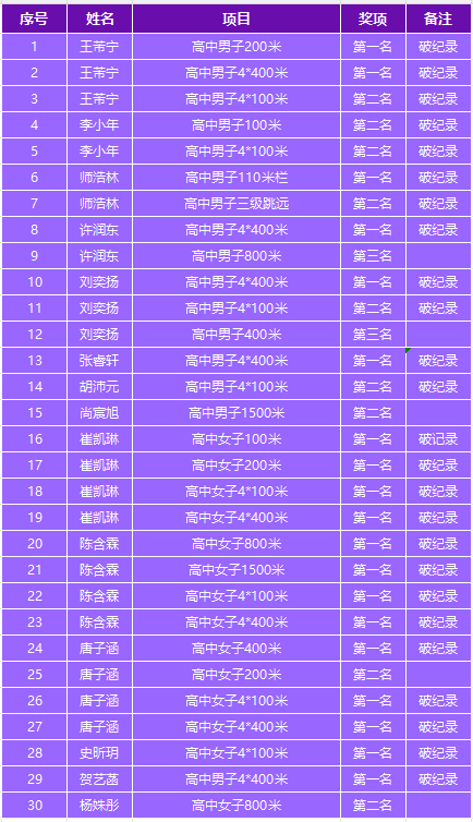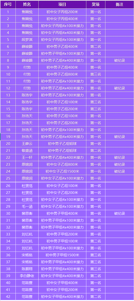 赛场上,运动健儿们秉持“无体育,不清华,无体育,不秦汉”的体育精神,沉着应战、团结协作,无论是个人还是团体项目,都全力以赴、奋勇争先,将日常训练成果完美展现于赛场,在众多参赛队伍中脱颖而出。最终,共获得30枚金、10枚银牌、8枚铜牌,并打破13项区记录。用汗水与拼搏书写了学校体育竞技的崭新篇章,充分展现了秦汉学子蓬勃向上的精神风貌与卓越的综合素养。