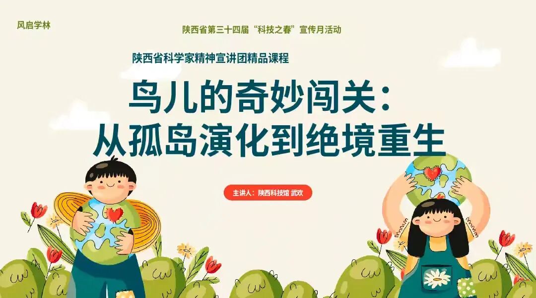 本次活动特别邀请了陕西科技馆助理研究员武欢老师担任主讲嘉宾。武欢老师带来的《鸟儿的奇妙闯关》,用最生动的故事,带领同学们走进鸟类的奇妙世界 层层递进的内容既科普了生物知识,也传递了科学探究的精神。
