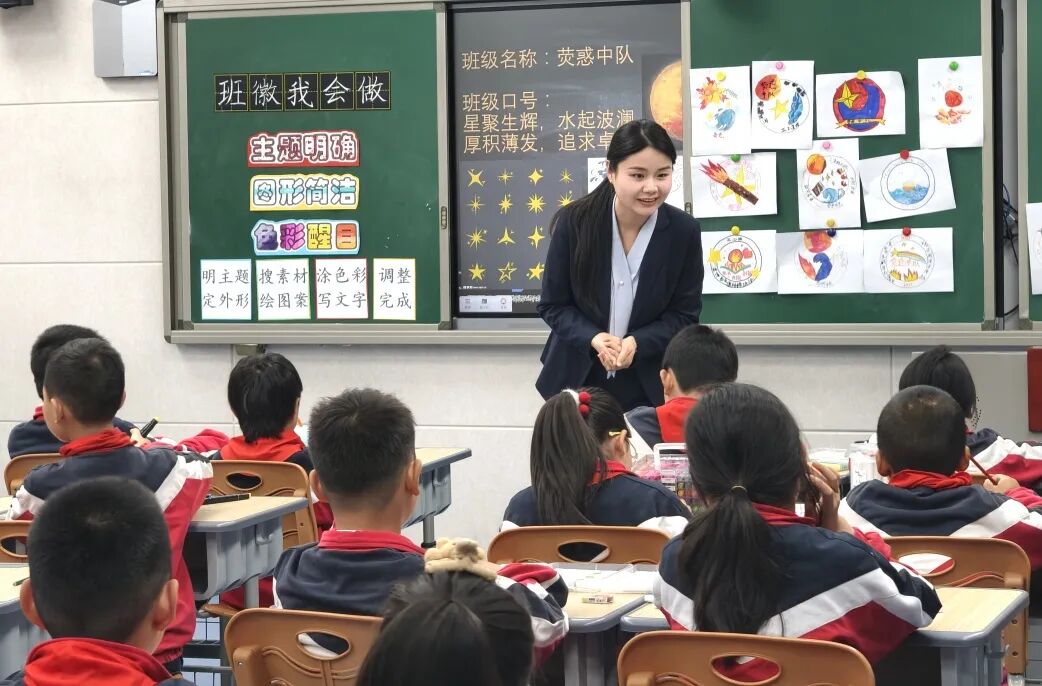 孙敏老师的《班徽我设计》,以启发式的教学、开放的课堂氛围,引导三二班学生发挥创意、动手实践,在设计中增强班级凝聚力,提升审美素养。