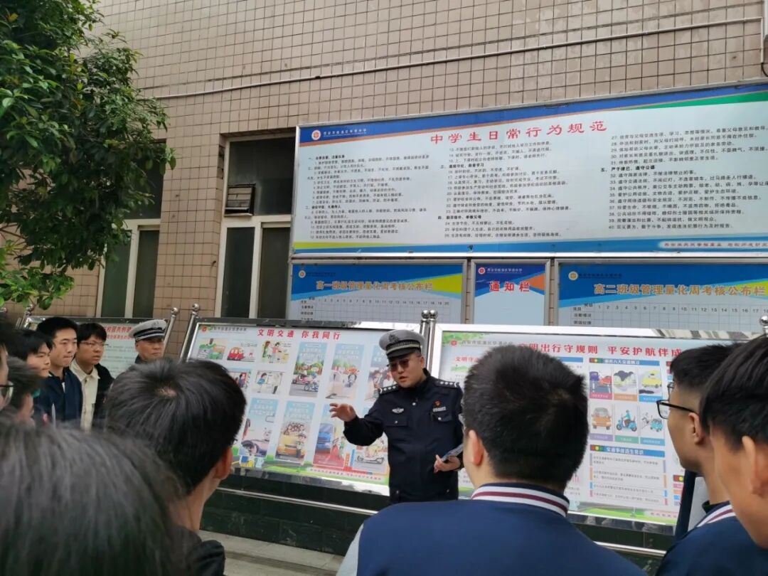 成立了以校长李东京为组长的专项领导小组,政教处牵头、安保科和各年级协同,联合区交警大队,系统策划主题班会、展板宣传、交警宣讲、文明劝导、家校座谈等活动,构建“学生—家庭—社会”三位一体安全教育格局。