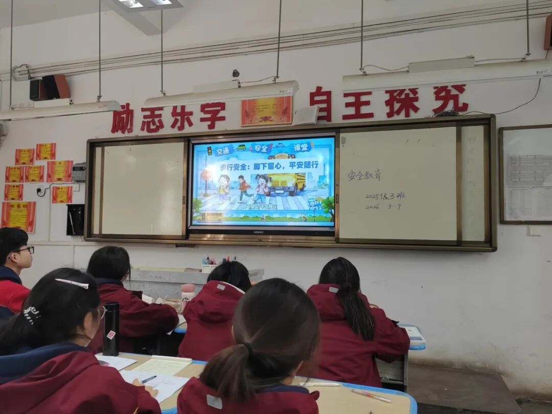 各班开展“五分钟交通安全微班会”活动,通过警示片、案例分析、互动问答,让学生掌握骑行、步行、乘车安全要点,强化自我保护意识。校园内外布设图文展板,滚动宣传交通法规、陋习危害与出行规范。向家长发放《禁止未满16周岁学生骑行电动车告知书》,把安全要求延伸至家庭。