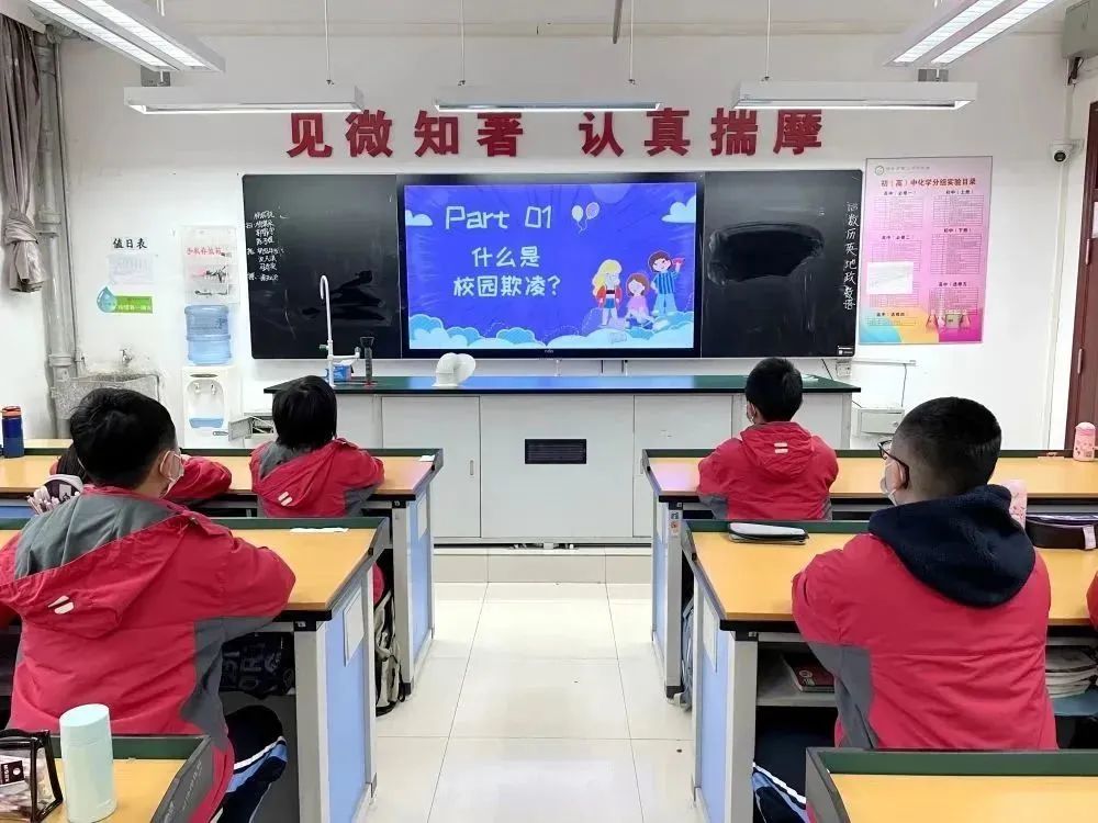 下午班会课上,各班班主任利用ppt展示,向学生讲解了有关校园欺凌、校园暴力的常识。学生明白了哪些行为属于校园欺凌,校园欺凌会造成哪些危害,该如何应对等。懂得了当遭遇校园欺凌、暴力时,要敢于向校园欺凌说“不”,不隐瞒,不以暴制暴,做遵纪守法好学生的道理。