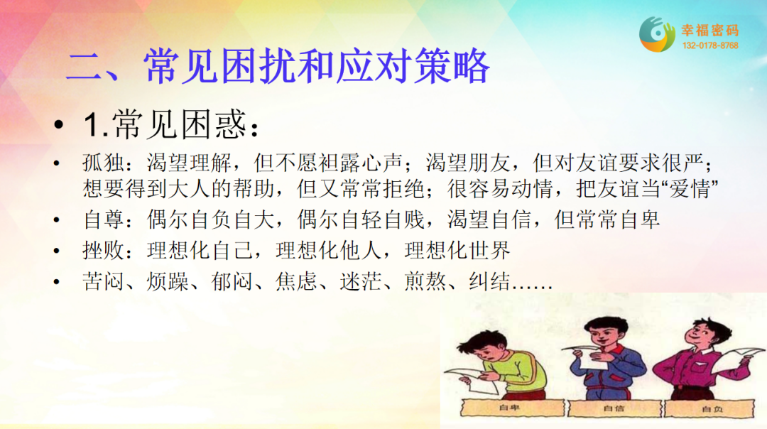 青春期是由青少年向成人过渡的关键期,它是个体身心快速发展变化的阶段,是人生中最美好最活跃而心理上但最困惑的时期,伴随着希望、朝气与活力,也充满躁动、困惑与敏感,潜伏着危机。因而青春期的青少年是一个特别需要关心和重视的群体。