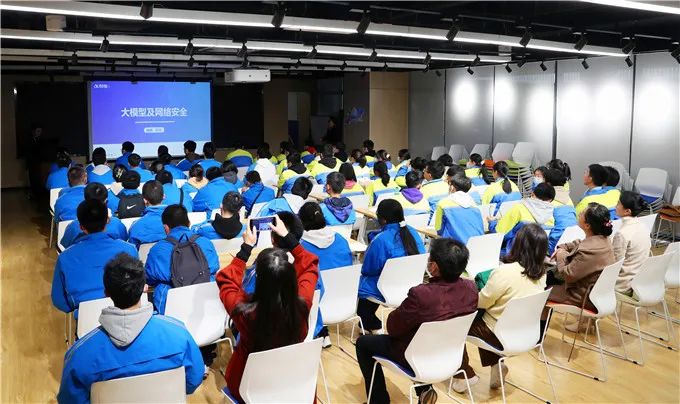 此次体验活动分为面授课程和展厅参观两部分。首先,科大讯飞西安研究院的构架师万兴老师为同学们带来了一场精彩的《大模型及网络安全》课程。课堂上,万兴老师通过生动的案例和实际操作,向同学们介绍了大模型的基本概念、原理和应用,以及网络安全的重要性。同学们在听课过程中积极互动,提出了许多有深度的问题,展现出了对科技的浓厚兴趣。