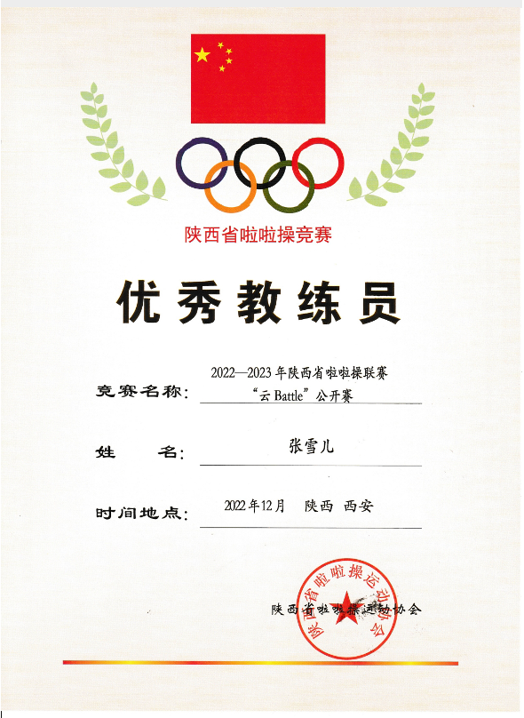 西安锦园学校也正式成为陕西省啦啦操运动协会会员单位,并被评为2023年先进单位,啦啦操俱乐部负责人张定金老师在这次比赛中也被授予“优秀裁判员和优秀教练员”的荣誉称号。