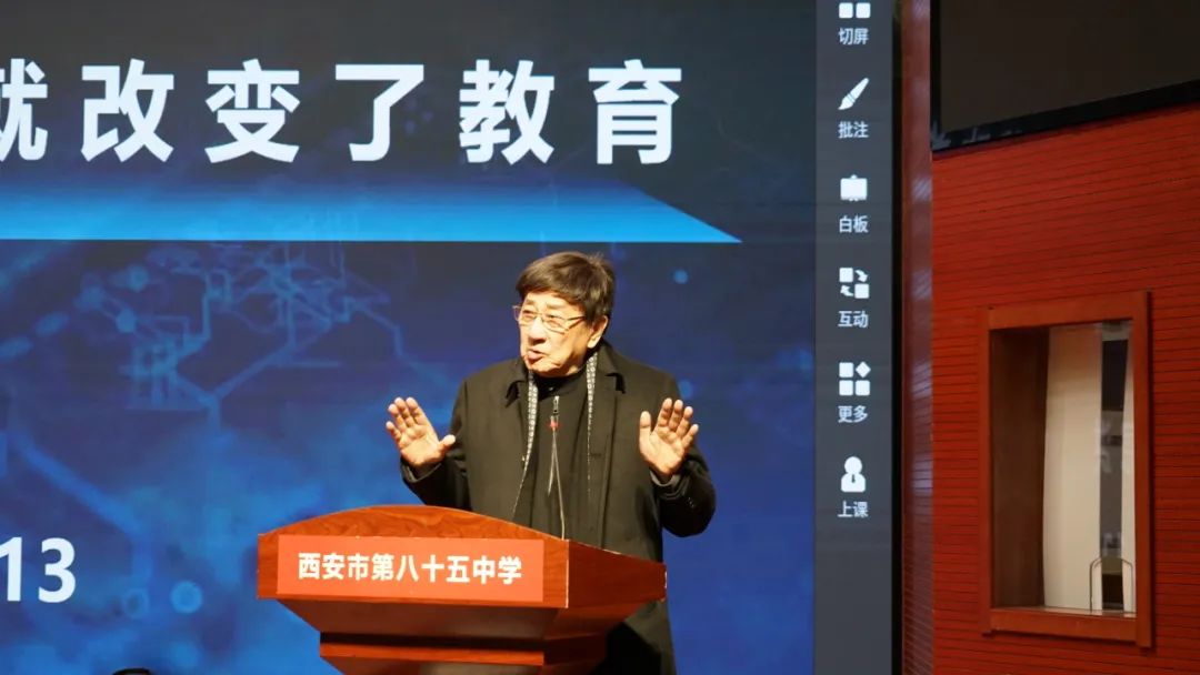 为持续深化教学改革,提高课堂质量,切实提升教师教学能力和学生学习能力,努力让每一个孩子都能享受公平而有质量的教育。12月13日,西安市第八十五中学邀请到了在教育界有“南冯北魏”之称著名教育家,新时代中国杰出教育家冯恩洪教授,来到学校指导教育教学工作。冯恩洪教授在学校图书馆报告厅为全体教师,“名校+”共同体、县域帮扶学校和兄弟学校教师代表,家长代表作题为《谁改变了课堂 谁就改变了教育》的专题报告。