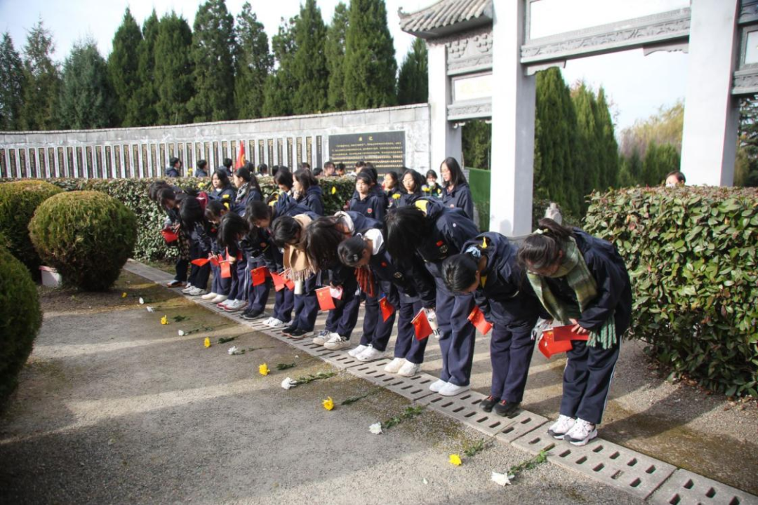 师生们列队整齐、庄严肃穆,来到渭华起义纪念碑前,高唱国歌并举行了敬献花篮仪式。在学生代表的带领下,同学们庄严宣誓:“铭记烈士精神,珍惜和平时光,砥砺前进,奋发有为!”仪式结束后,同学们参观烈士陵园,为烈士献花,表达哀思!